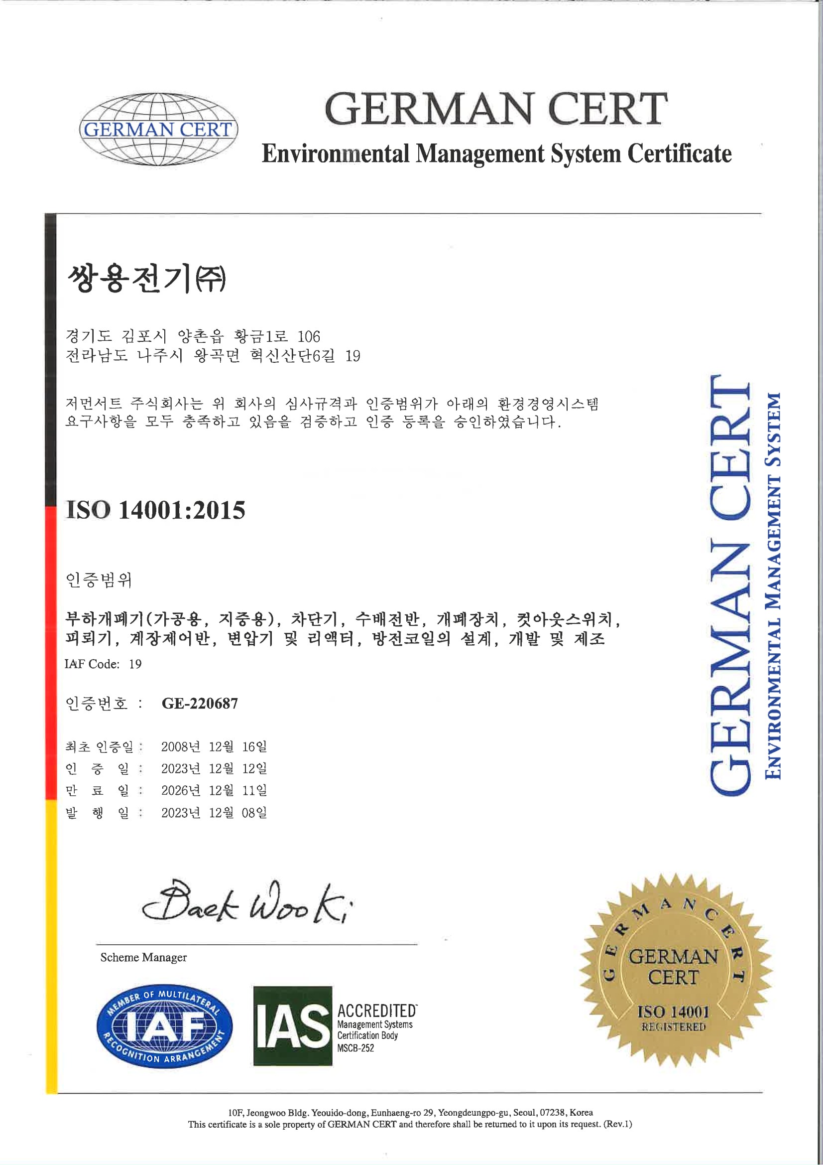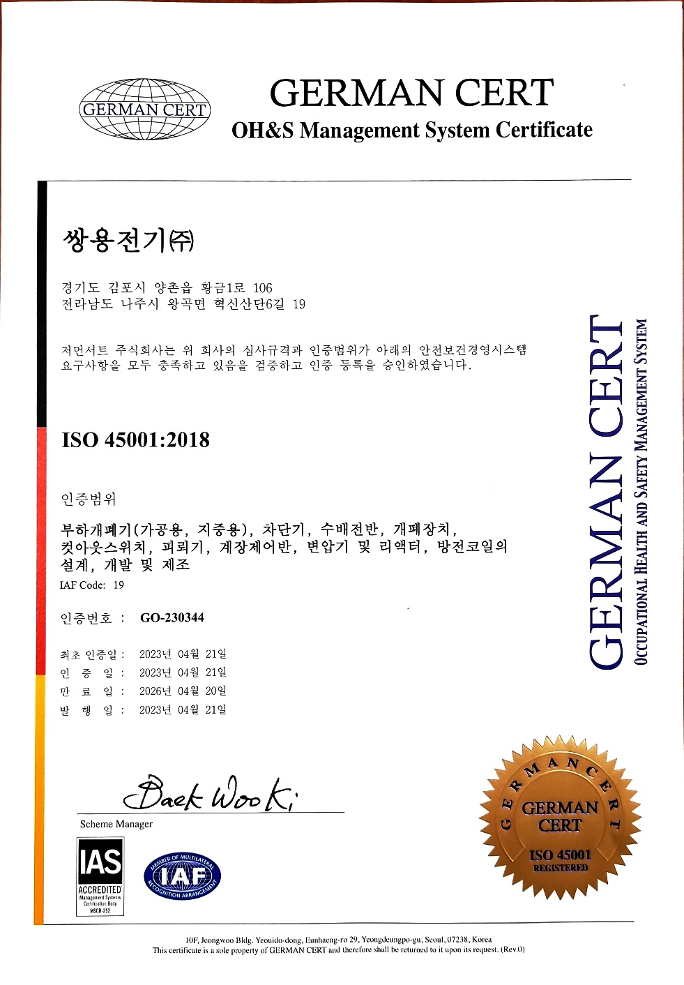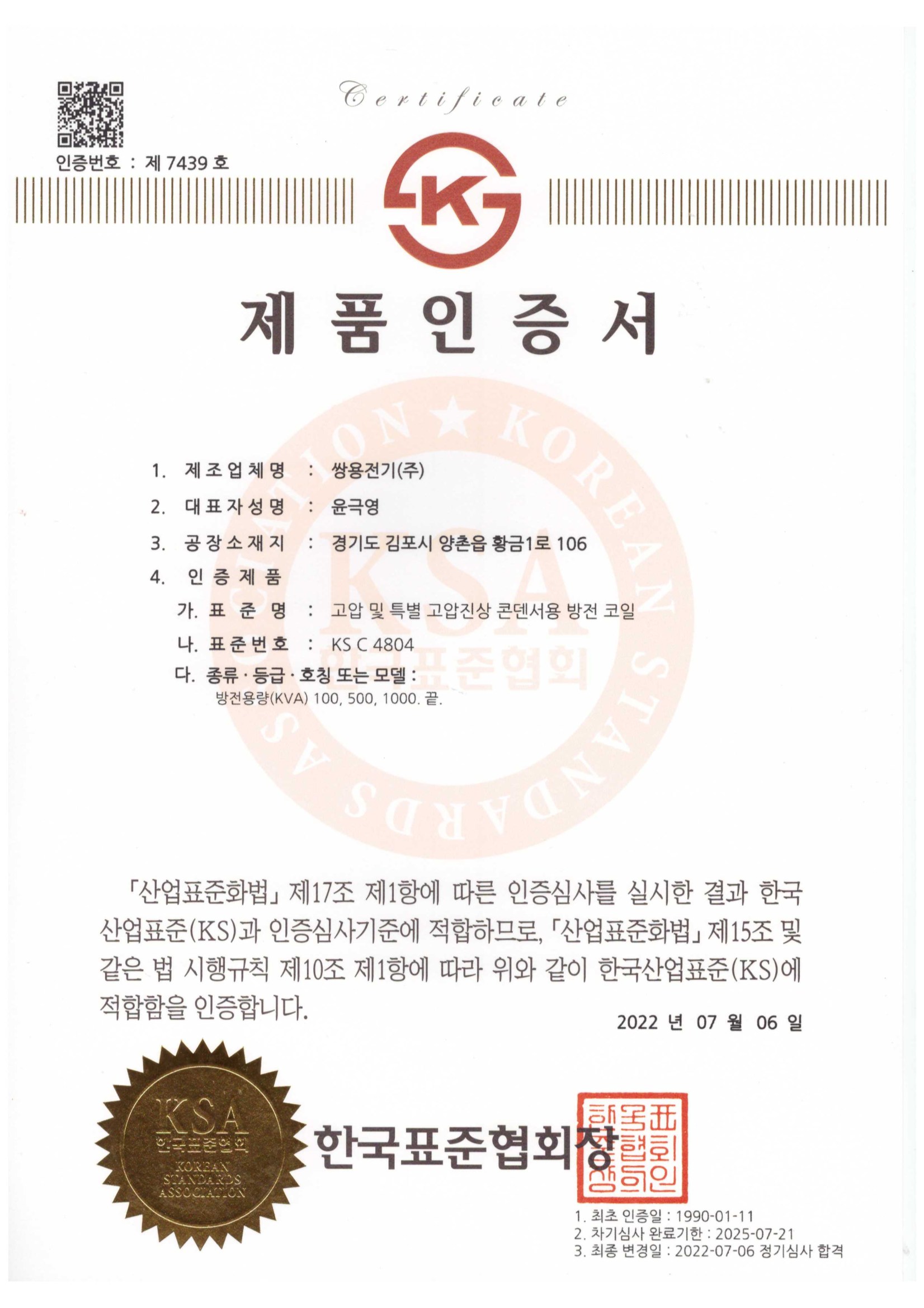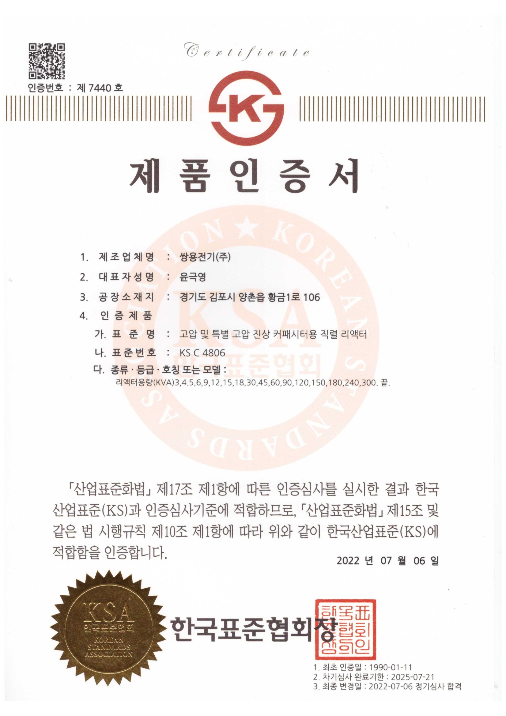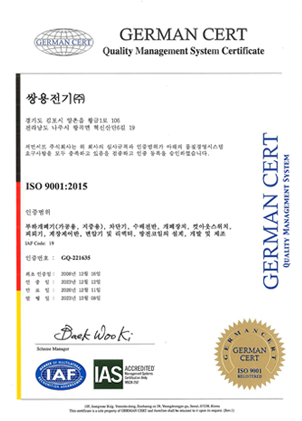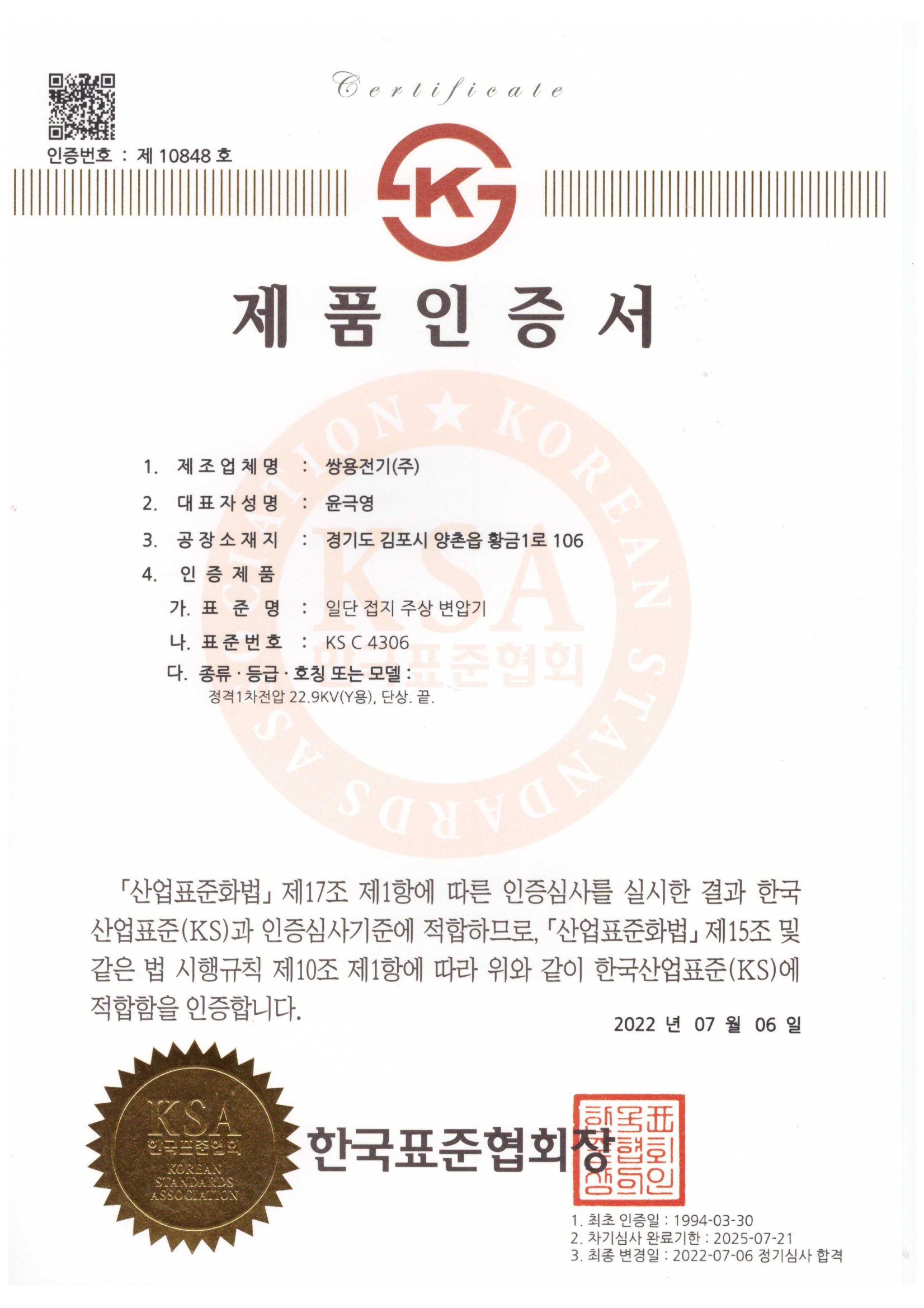 국제 기준이 증명한 품질, 쌍용전기㈜ – KS, IEC 국제 규격과 공인 시험 인증을 통해 안정성과 신뢰를 보장합니다.